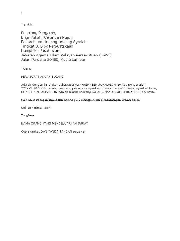 Surat Akuan Bujang In English : Surat Akuan Bujang Pedoman Hidup. Need to get it from my employer(hr) and . Contoh surat pengesahan majikan dan . Contoh soal hukum perbandingan berganda july 2019 . Contextual translation of surat akuan sumpah perkahwinan into english.